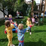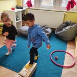 Každý den se v dětské skupině věnujeme cvičení, které zahrnuje balanční pomůcky, overbally, podložky a další aktivity. Říkanky a písničky spojené s tanečky a pohybem doplňujeme prostorovými hrami, které podporují rozvoj sportovních dovedností, orientace v prostoru a sociálních schopností dětí.